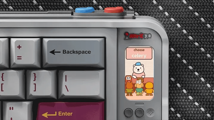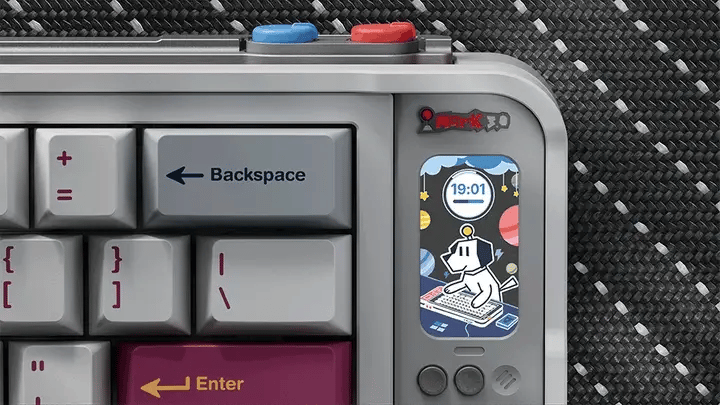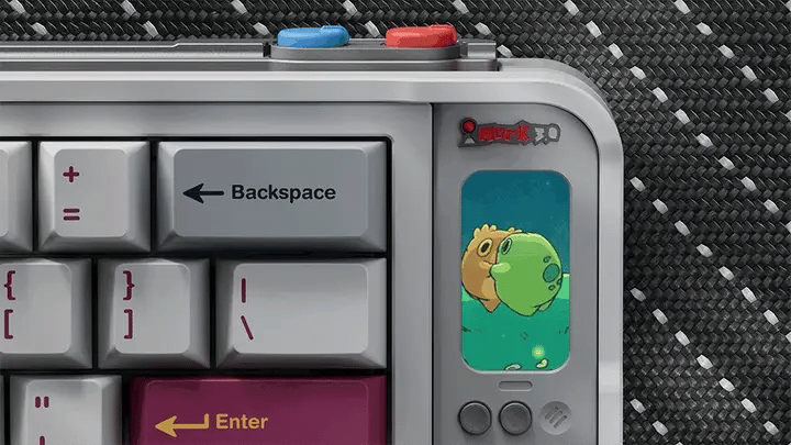 The dot- matrix display resembles a mini handheld console, perfectly fitting the retro console theme. It continues the three themes previously featured on the QK101 and QK80 Mk2. The button below the screen allow you to switch between different modes.